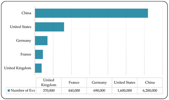 As shown in Figure 5, the number of electric vehicles (EVs) in use was substantial in 2023 and is expected to increase. China holds the largest share with 6.2 million EVs, while the U.K. has the lowest among the mentioned countries, with 370,000 EVs. Driven by goals to reduce fuel demand and lower pollution from car emissions, China and the US have implemented stringent rules and regulations to advance EVs development. The US encourages EV adoption through federal tax credits, state-level mandates, and emissions standards, with policies like the Clean Vehicle Tax Credit and California’s ZEV program. China’s 14th Five-Year Plan includes significant investments in charging infrastructure, NEV mandates, and incentives like purchase subsidies and tax exemptions. These initiatives aim to reduce carbon emissions, enhance transportation sustainability, and improve grid flexibility.