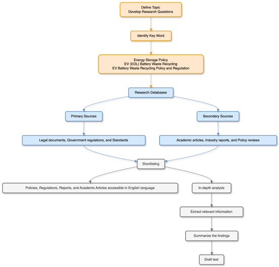 This structured approach allows for a well-rounded assessment of international experiences in EV battery recycling and supports the formulation of context-sensitive recommendations for improved regulatory implementation. A summary of the research process is depicted in Figure 7.