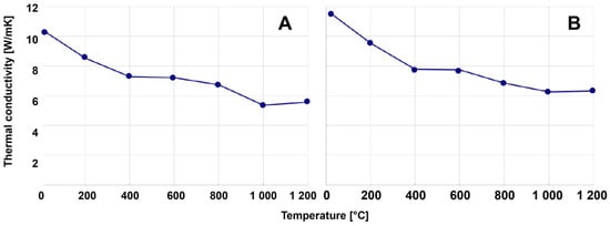 Thermal conductivity of a standard MgO-C brick (A) and a brick with flotation graphite (B).
