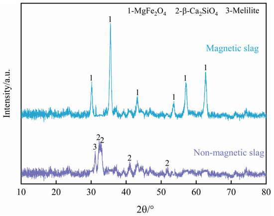 XRD patterns of magnetic phase and non-magnetic slag of S2 sample.