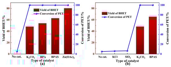 The initial study focused on the effect of various catalysts on PET glycolysis. Figure 2a shows the catalytic performance of different catalysts during PET glycolysis.