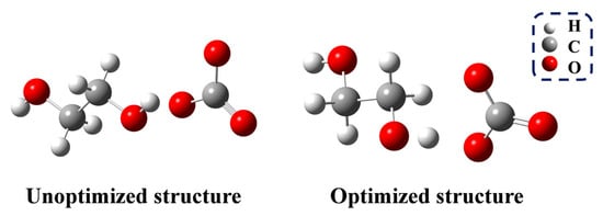 To gain a more comprehensive understanding of the mechanism of PET catalytic glycolysis using BPA, the interaction between EG and BPA and the key reaction pathway were investigated using DFT calculations. Due to the large molecular weight of PET, ethylene glycol dibenzoate was employed as a model compound to simulate the breakdown of the PET ester bond, thereby reducing computational complexity. Because K2CO3 was identified as the partial catalytic source of BPA, K2CO3 was used in the corresponding calculations instead of BPA.