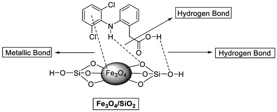 Adsorption mechanism of DCF onto Fe3O4/SiO2 nanocomposite.