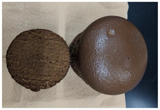 The liquefied product sample was used as a bio-based polyol for the synthesis of bio-polyurethane foam (PUF). The synthesis conditions were adjusted to achieve an isocyanate-to-hydroxyl group ratio of 1:1, based on the hydroxyl number measured in advance. The amounts of the blowing agent and DBTDL were fixed at 1 g in all cases. Since differences in foam uniformity were observed depending on the sample, the amount of foam stabilizer was determined through trial and error within the range of 1–3 g for each sample.