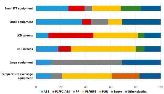 Distribution of polymer types by WEEE category, adapted from Haarman et al. (2020) [].