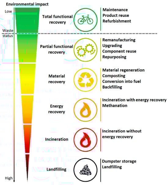Environmental impact hierarchy of the different end-of-life treatment options, adapted from [].