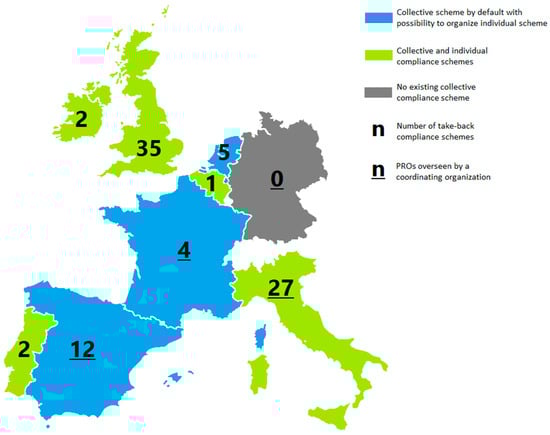 - Andersen, T. A comparative study of national variations of the European WEEE directive: Manufacturer’s view. Environ. Sci. Pollut. Res. 2021, 29, 19920–19939. [Google Scholar] [CrossRef]