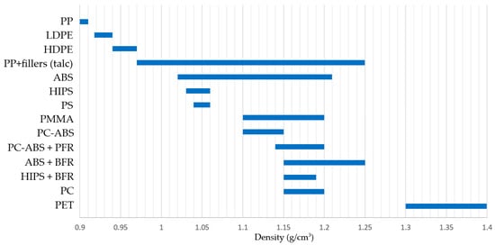 Another, more currently used approach consists of the manual disassembling and identification of the plastics, allowing for the precise characterisation of a specific piece of equipment’s composition. The only disadvantage of this method is that the batch sizes, age and origin of the studied waste are different, leading to difficult direct comparison. Some authors go even as far as to give a breakdown by components, like Tan et al. (2022) [] in the case of washing machines.