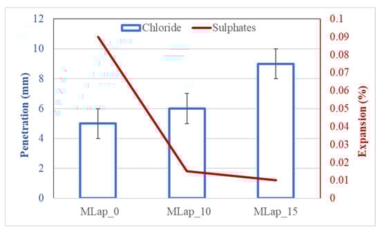 Chlorides penetration and expansion due to sulfates’ effects in mortars containing 0–10 and 15% of lapillus as SCM.