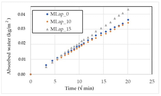 The experimental results of the water absorption permeation by capillarity are shown in Figure 12.