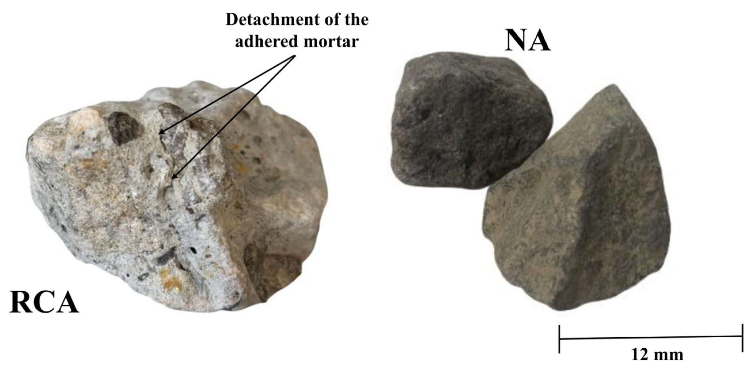 - Yang, X.; Liu, Y.; Liang, J.; Meng, Y.; Rong, H.; Li, D.; Chen, Y.; Lv, J.; Jiang, Y.; Liu, Y. Straightening Methods for RCA and RAC—A Review. Cem. Concr. Compos. 2023, 141, 105145. [Google Scholar] [CrossRef]