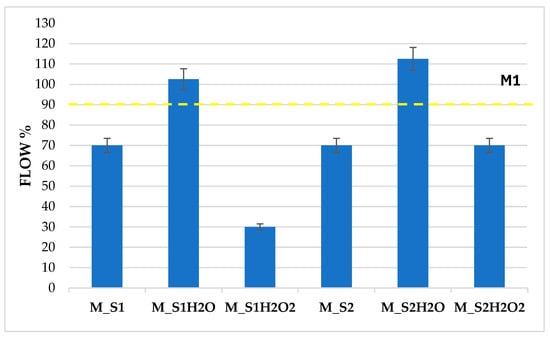 Flow test on samples M_S1–M_S2 and the same treated with H2O and H2O2.