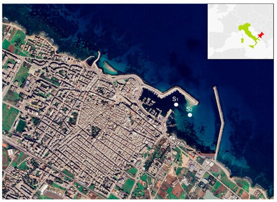 Port of Mola di Bari (S1 and S2 are the location of sampling points).