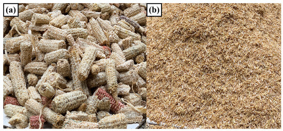 Raw biomass feedstocks: (a) corncobs and (b) RHs.