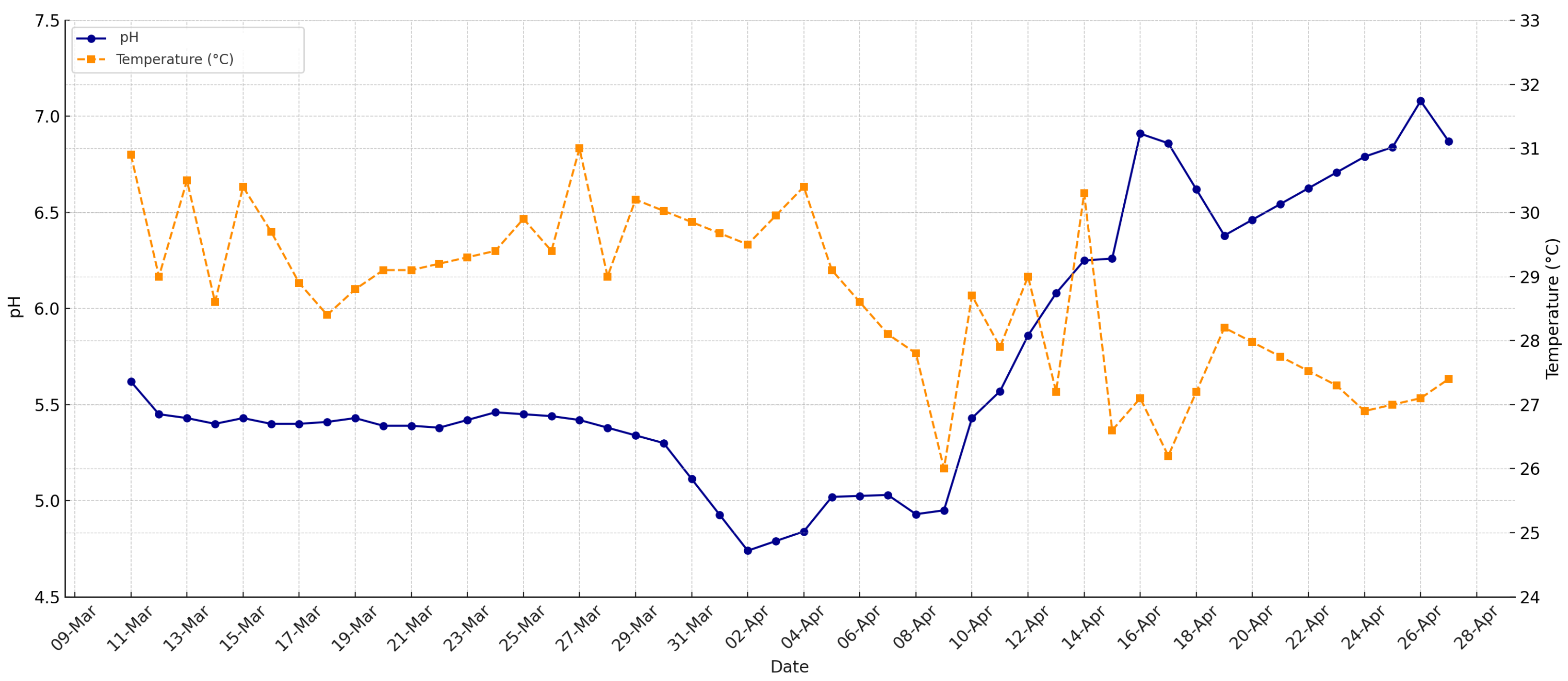 The simultaneous monitoring of both variables allowed early identification of the need for intervention (alkaline correction), demonstrating that success in biogas production depends on a holistic management of critical parameters, and that pH control is fundamental for the survival and optimal performance of methanogenic archaea, even under apparently favorable thermal conditions.