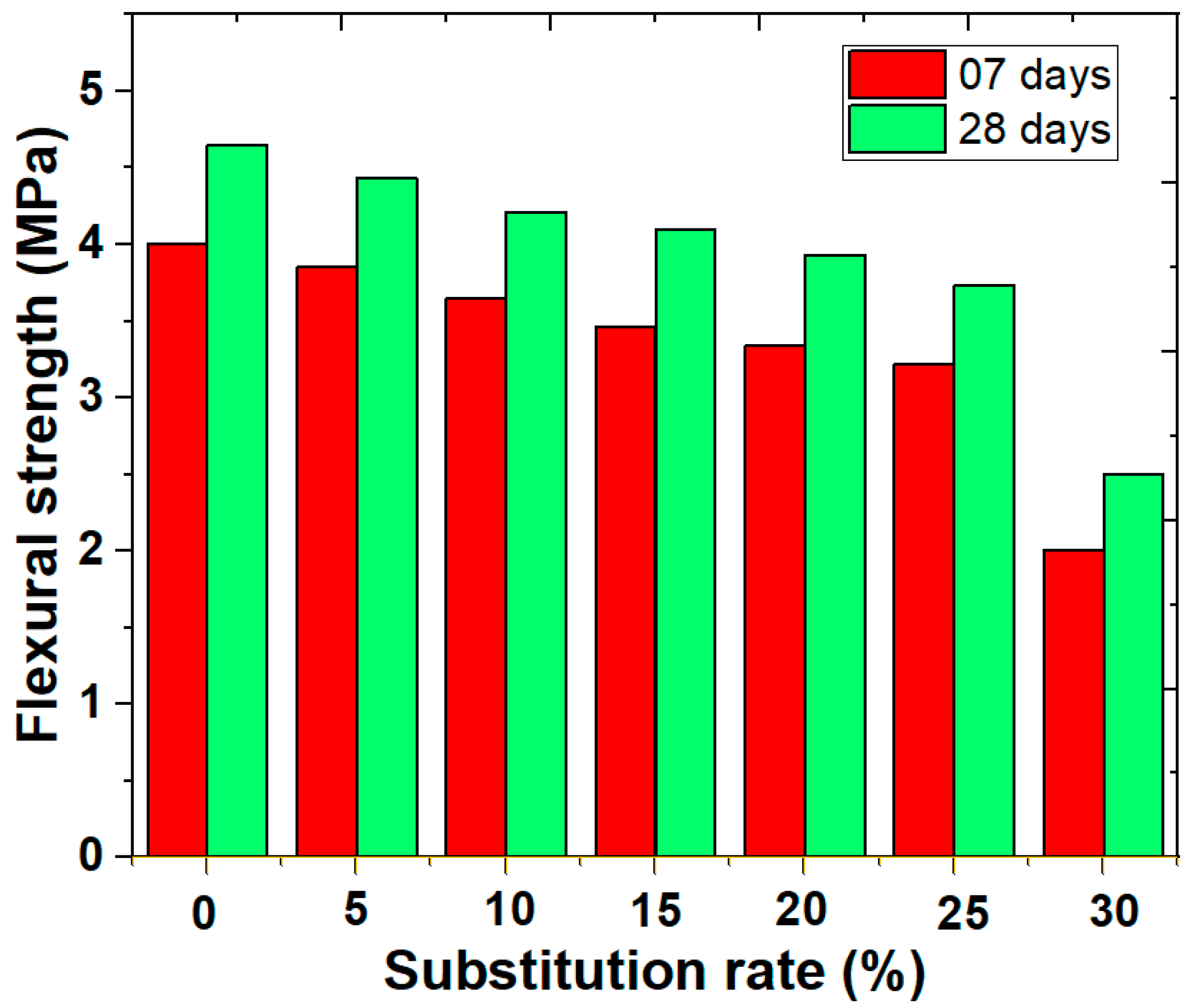 Figure 4. Flexural strength of cement–sludge mortars after 7 and 28 days of curing.