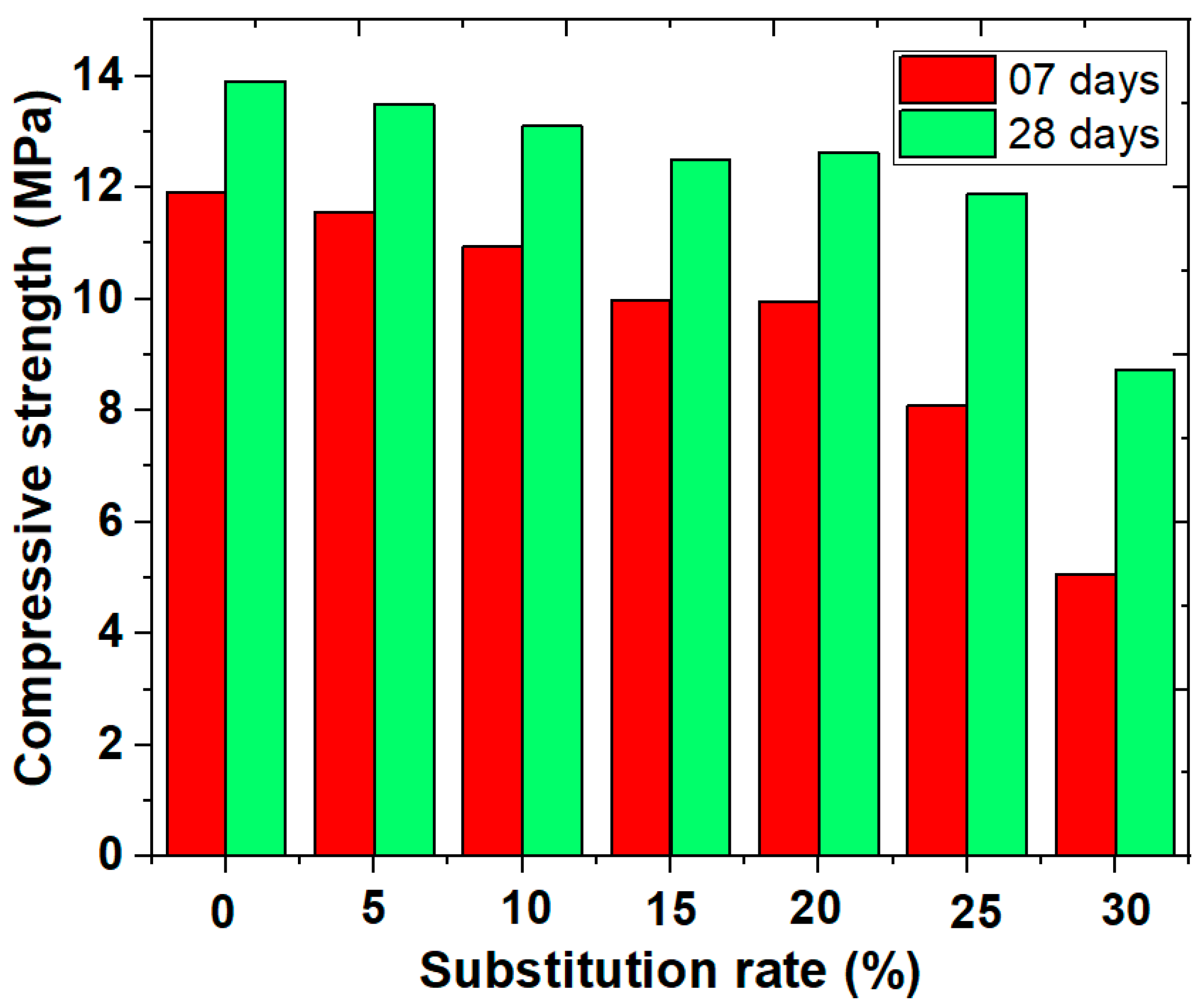 Figure 5. Compressive strength of cement–sludge mortars after 7 and 28 days of curing.