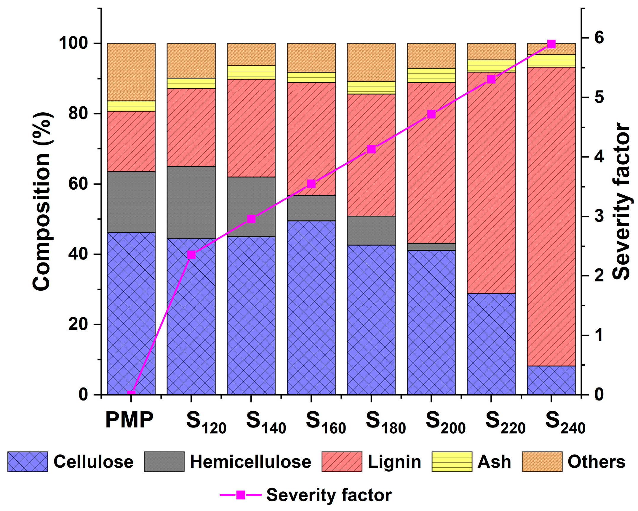 | Hemicellulose loss | 31.06 | 45.99 | 78.92 | 82.29 | 95.92 | 100 | 100 |