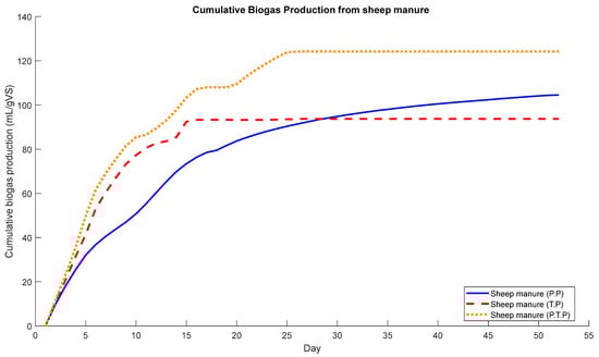 BMP test of sheep manure with different pretreatments: PTP, TP, and PP.