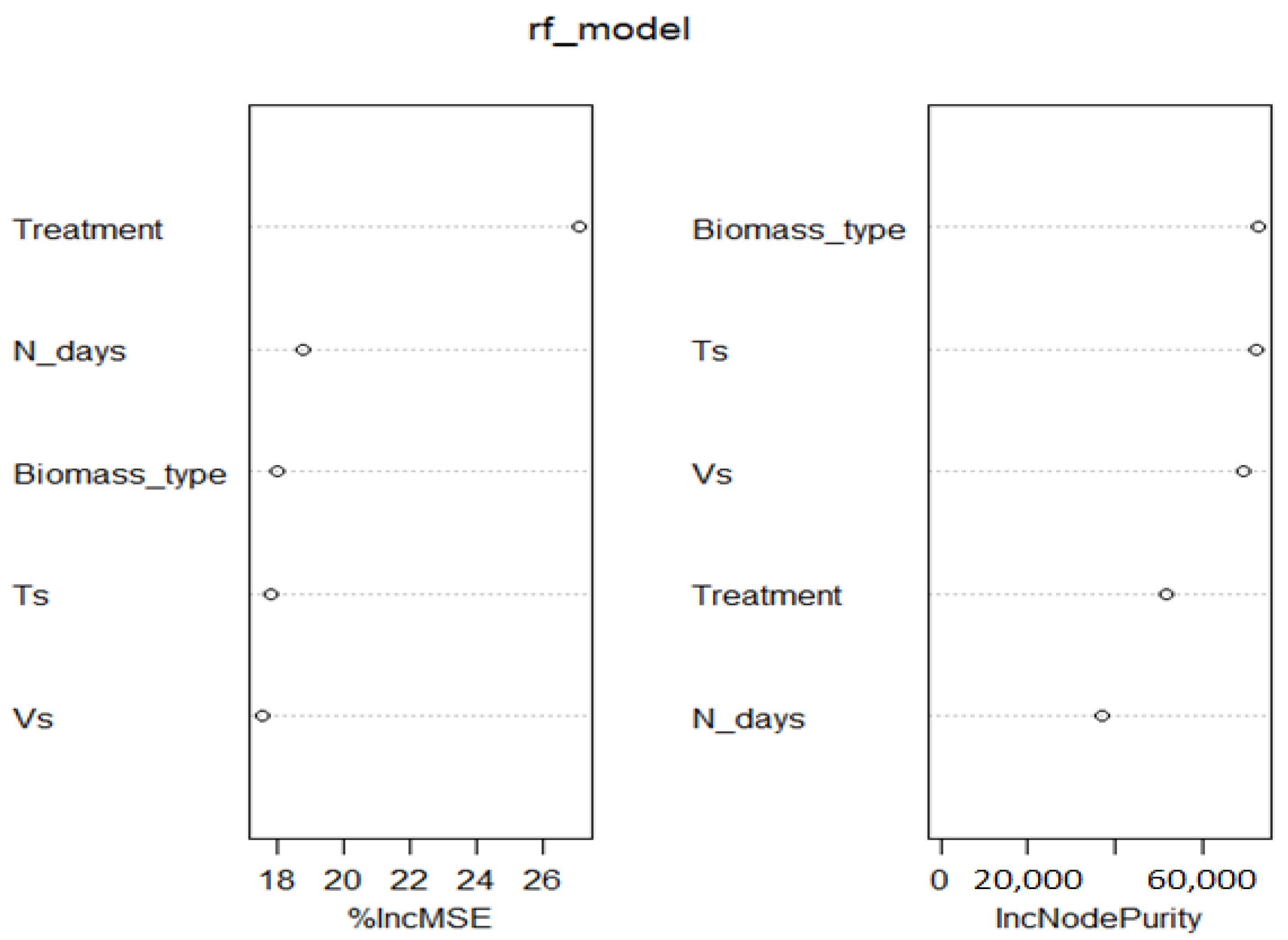 Exploratory Data Analysis (EDA) indicated that VS had the strongest correlation with methane yield with a value of correlation coefficient equal to 66%, underscoring its predictive importance (Figure 4).