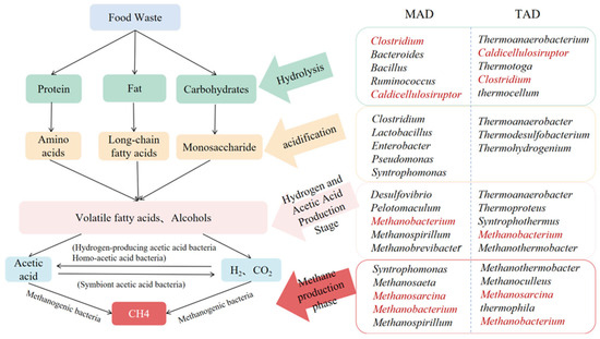 Comparison of Key Functional Microbial Communities in MAD and TAD Anaerobic Processes. Note: Red highlighting indicates that both methods contain the same bacteria.