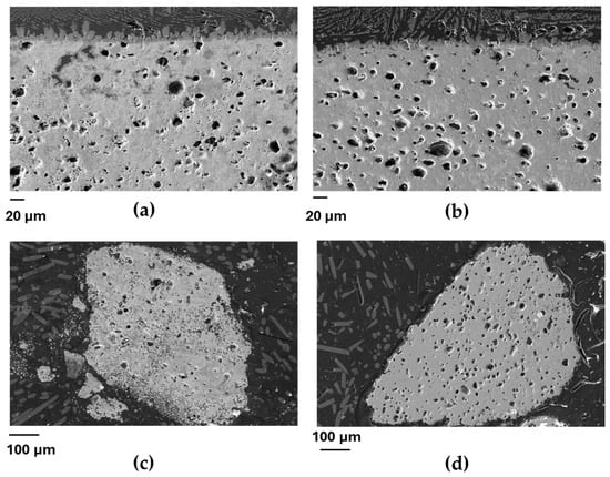 In order to corroborate these preliminary findings, two additional experiments with lab duplicated EOL coatings constating of monophase Yb2SiO5 and Yb2Si2O7 were performed. As-prepared samples exhibited almost monophase composition, minor amounts of the concurrent Yb-silicates could be detected by XRD, respectively. Both simulated EOL materials were exposed to standard H2SO4 leaching as described before. SEM microstructures given in Figure 3 show the appearance of two pure EOL coatings and solid residues after sulfuric acid leaching.