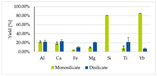 For the approach described above, the first entry in Table 1 is of particular interest. The accompanying elements in the source material analyzed by El-Nadi et al. [33] overlap with those in Yb silicate. However, the greater differences lie in the concentration of the elements. It can therefore be assumed that the system needs to be adjusted, but that the extraction medium is promising.