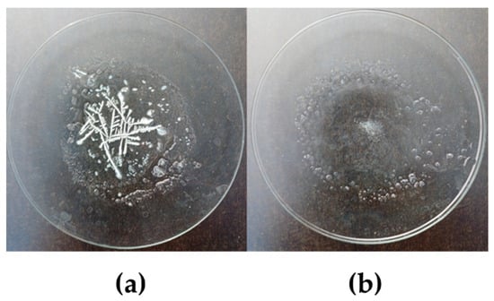 Pregnant leach liquors of Yb2SiO5 and Yb2Si2O7 were stored at 100 °C for 24 h in a watch glass, as represented in Figure 6. Both liquors still showed no complete drying and some gelatinous features. However, the Yb2SiO5 sample showed significant precipitation of bright, dendritic crystals.
