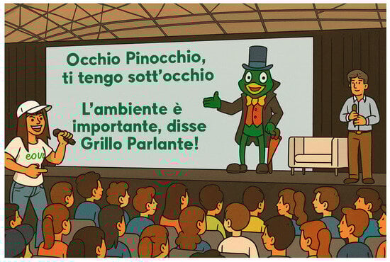 23], educators involved in Greenopoli initiatives express strong appreciation for the approach and also highlight the need for teacher training to ensure continuity and institutional anchoring of the method across schools. In this regard, the Greenopoli method has already begun to generate forms of internal replication through former students who have progressively assumed the role of environmental educators. Some of these practitioners combine scientific training with artistic and communicative skills, contributing to the transmission of the method beyond its original founder. For example, Iannone, who holds a degree in environmental sciences and is also an active singer and musician, currently applies the Greenopoli approach in educational and outreach activities, demonstrating how the method can be embodied and reinterpreted by new educators while preserving its core principles.