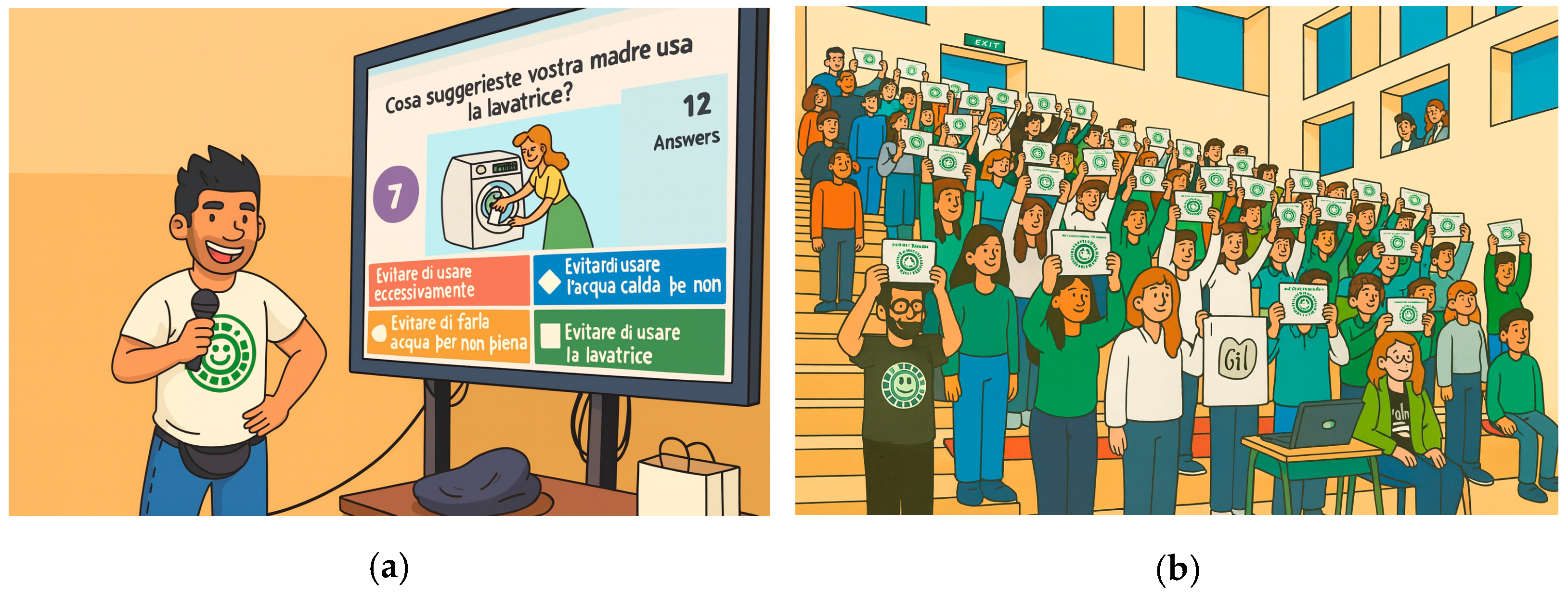 Figure 5b). In fact, some Greenopoli sessions for this age have turned the tables: students form teams to write a short rap or poem about a sustainability issue and perform it. This creative exercise not only makes the session fun but also allows the educator to assess students’ understanding based on the content of their lyrics. Peer-led performances often carry peer influence; hearing classmates rap about saving the planet can be more impactful than hearing it from an adult. Such peer-to-peer elements are deliberately cultivated in Greenopoli, reflecting evidence that peer education can be highly effective in motivating behavior change [