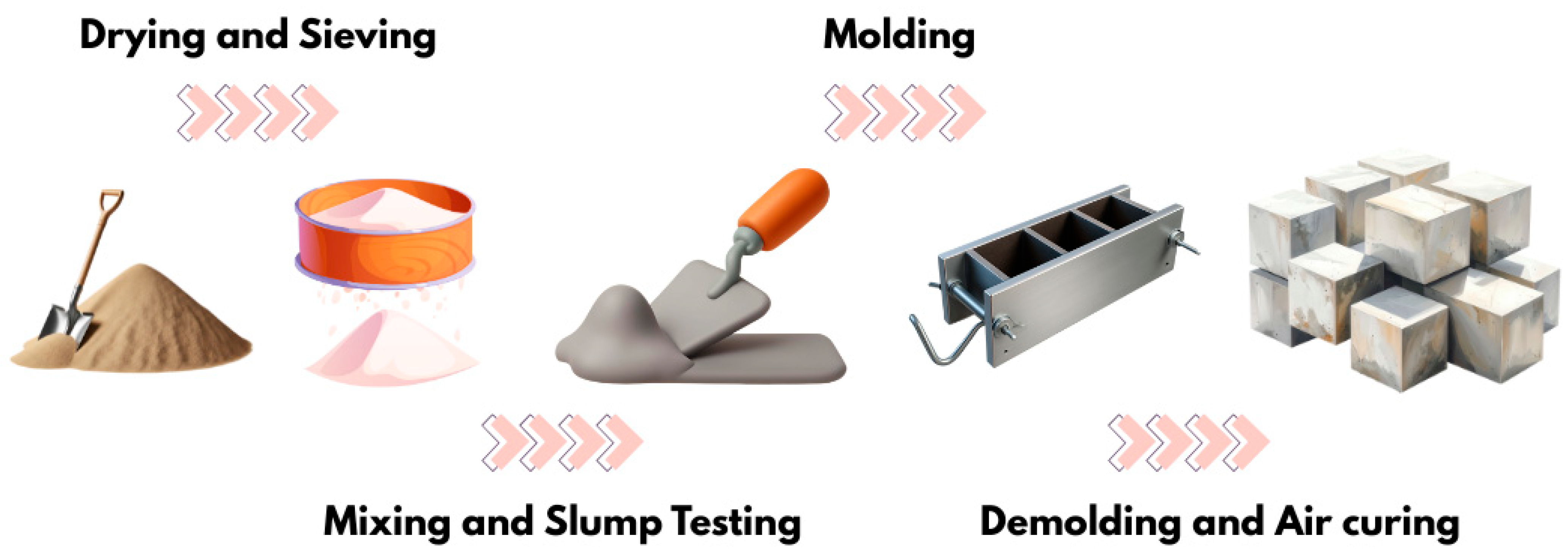3.2. Hybrid Geopolymer-Cement Mortar Blocks Preparation