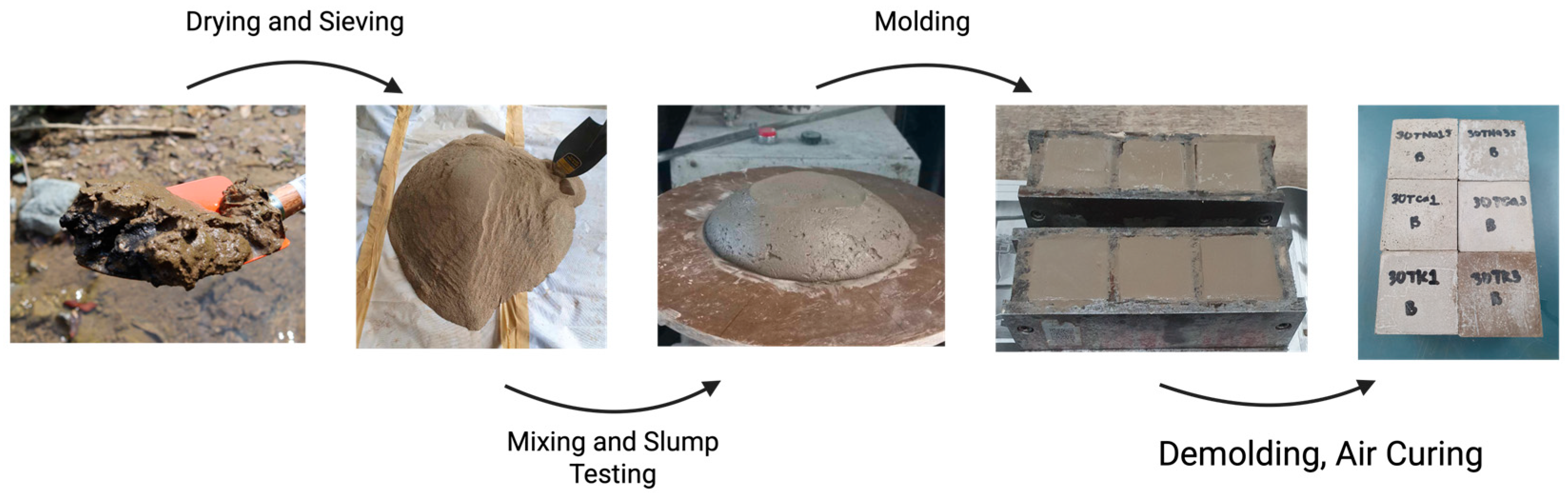 3.1. Raw Materials Collection and Characterization