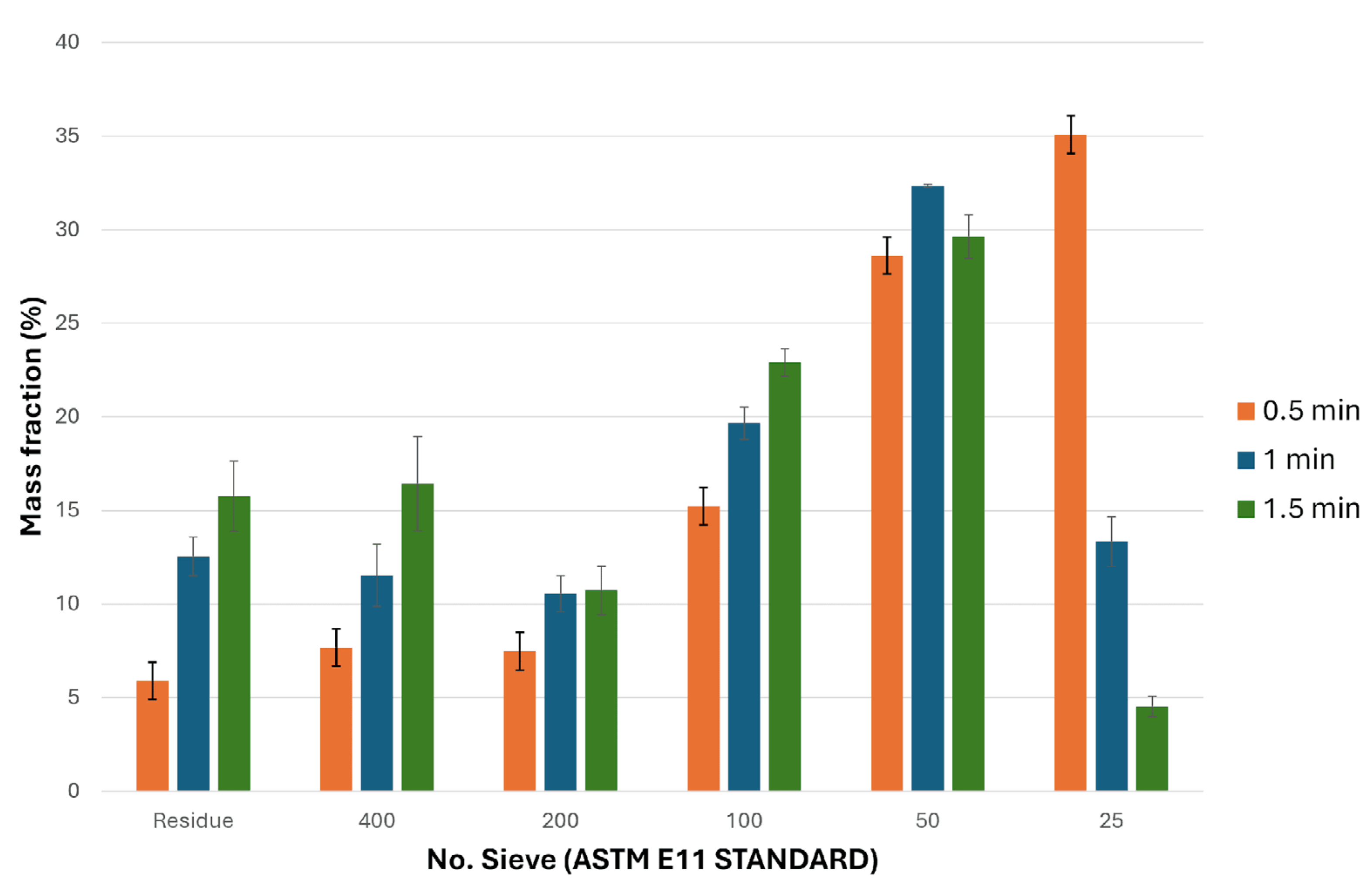 | Average Particle Size, Dmean (µm) | Standard Deviation, σ (µm) | Span (Dimensionless) | |
