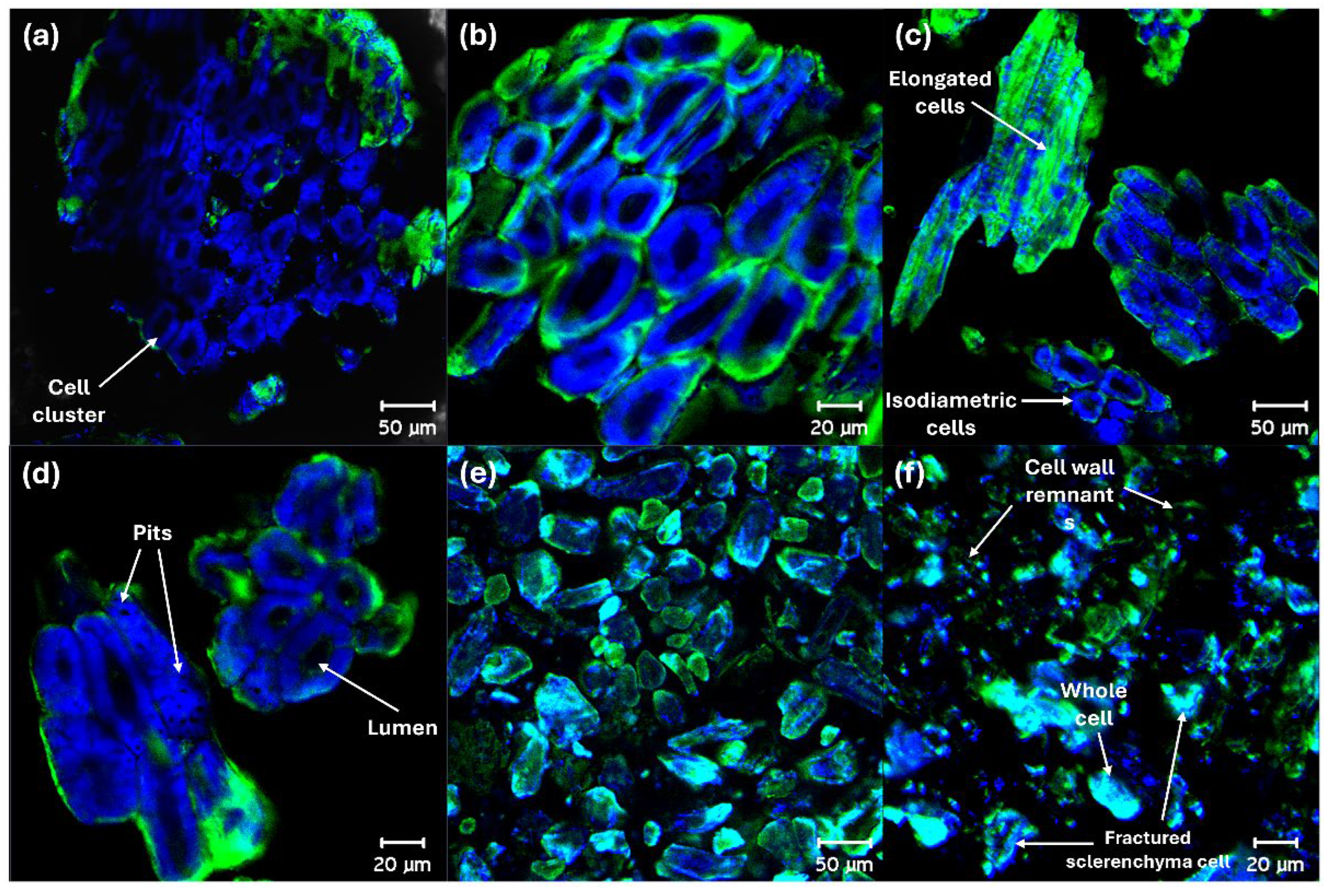 - Bond, J.; Donaldson, L.; Hill, S.; Hitchcock, K. Safranine Fluorescent Staining of Wood Cell Walls. Biotech. Histochem. 2008, 83, 161–171. [Google Scholar] [CrossRef]