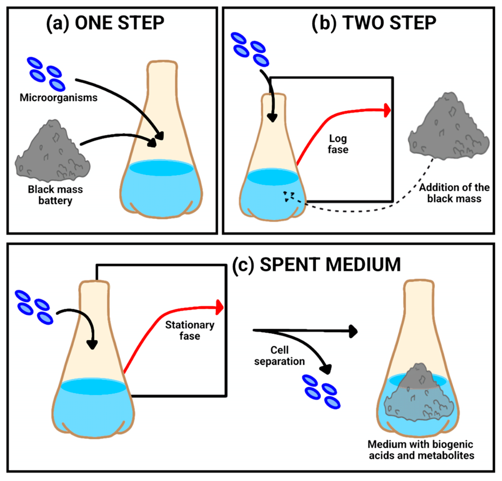 - Lalropuia, L.; Kucera, J.; Rassy, W.Y.; Pakostova, E.; Schild, D.; Mandl, M.; Kremser, K.; Guebitz, G.M. Metal Recovery from Spent Lithium-Ion Batteries via Two-Step Bioleaching Using Adapted Chemolithotrophs from an Acidic Mine Pit Lake. Front. Microbiol. 2024, 15, 1347072. [Google Scholar] [CrossRef] [PubMed]