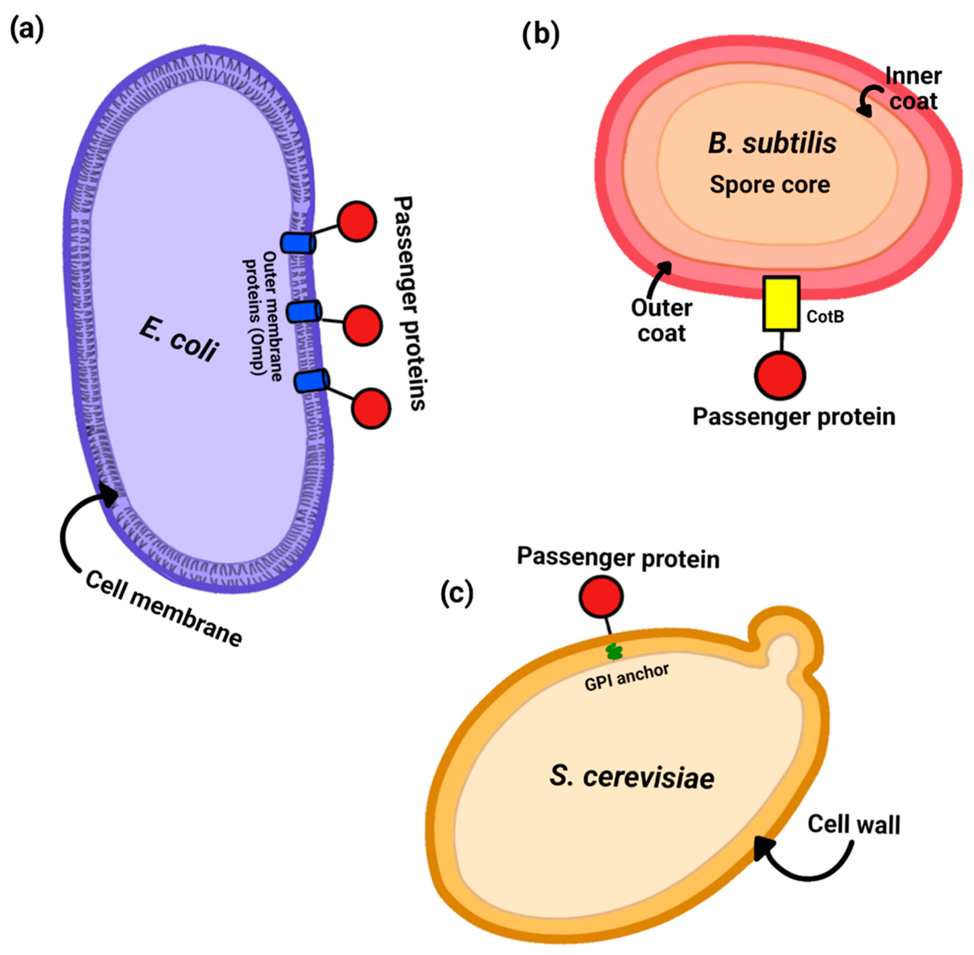 - Guoyan, Z.; Yingfeng, A.; Zabed, H.M.; Qi, G.; Yang, M.; Jiao, Y.; Li, W.; Wenjing, S.; Xianghui, Q. Bacillus subtilis Spore Surface Display Technology: A Review of Its Development and Applications. J. Microbiol. Biotechnol. 2019, 29, 179–190. [Google Scholar] [CrossRef]