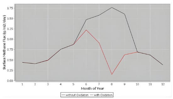 The use of CALMIM is particularly suitable for operational landfills, as it incorporates the seasonal influence on microbial oxidation potential and methane diffusion, offering a temporally refined representation of fluxes. In the present study, all simulations were conducted with local climate data and soil parameters compatible with the characteristics of the landfill cover, ensuring that the estimates realistically reflected the specific site conditions.