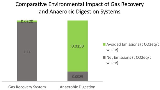 However, the study by Ref. [21] indicates that implementing strategies such as anaerobic digestion and composting can significantly lower these emissions. Furthermore, as noted by Ref. [22], recovering energy from biogas contributes to replacing fossil fuels, which in turn reduces indirect CO2 emissions [23].