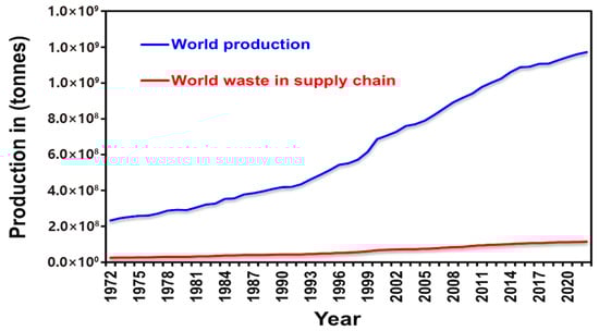 Global vegetable production and supply chain waste (1972–2022) [1,2,3,4].