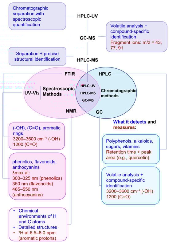 For a clearer understanding of the agro-food residues analyzed, it is essential to provide botanical definitions: fruits are seed-bearing structures that develop from the ovary of flowering plants, while vegetables cover a broader range of edible plant parts, including roots, stems, leaves, and immature inflorescences [69]. This classification is taxonomically relevant and functionally significant, as different plant organs accumulate specific classes of phytochemicals. For instance, fruit peels, rinds, and seeds often concentrate pigments and compounds with aromatic rings (e.g., flavonoids and carotenoids) [70]. In contrast, vegetables, especially those in the Brassicaceae and Amaryllidaceae families such as broccoli, cabbage, and cauliflower, are rich in glucosinolates and sulfur-containing metabolites [71]. The selected residues, derived from the crops listed in Table 2, have been studied due to their potential as sources of BCs. Their botanical diversity and waste generation profiles provide a strong framework for comparing the chemical composition and functional potential of their by-products. The following section offers a compound-specific analysis supported by recent literature.
