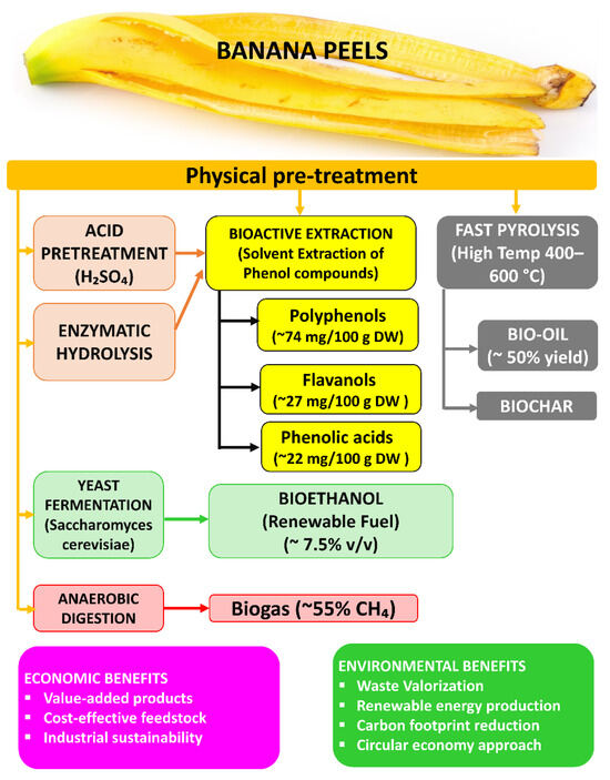 - Zou, F.; Tan, C.; Zhang, B.; Wu, W.; Shang, N. The Valorization of Banana By-Products: Nutritional Composition, Bioactivities, Applications, and Future Development. Foods 2022, 11, 3170. [Google Scholar] [CrossRef]