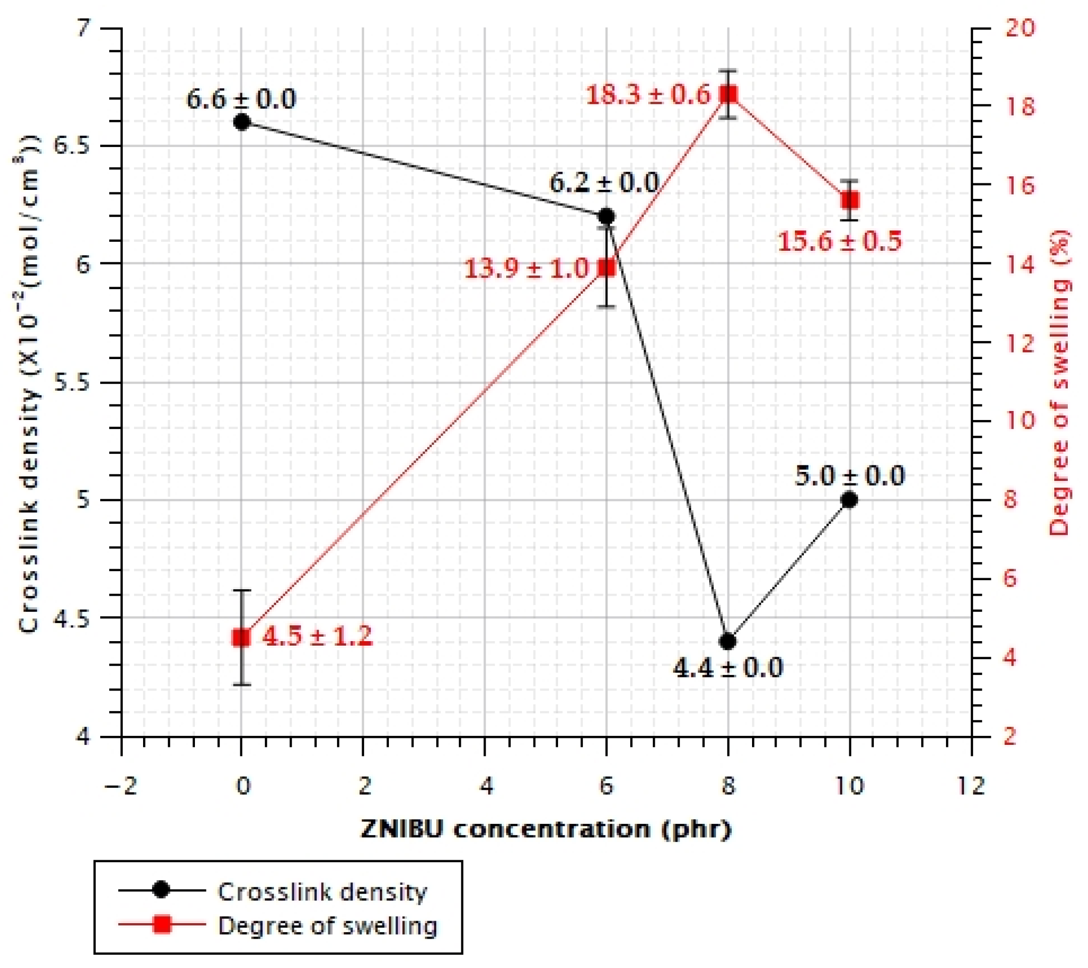 | ZNIBU Concentration (phr) | Maximum Degradation Temperature (°C) |
