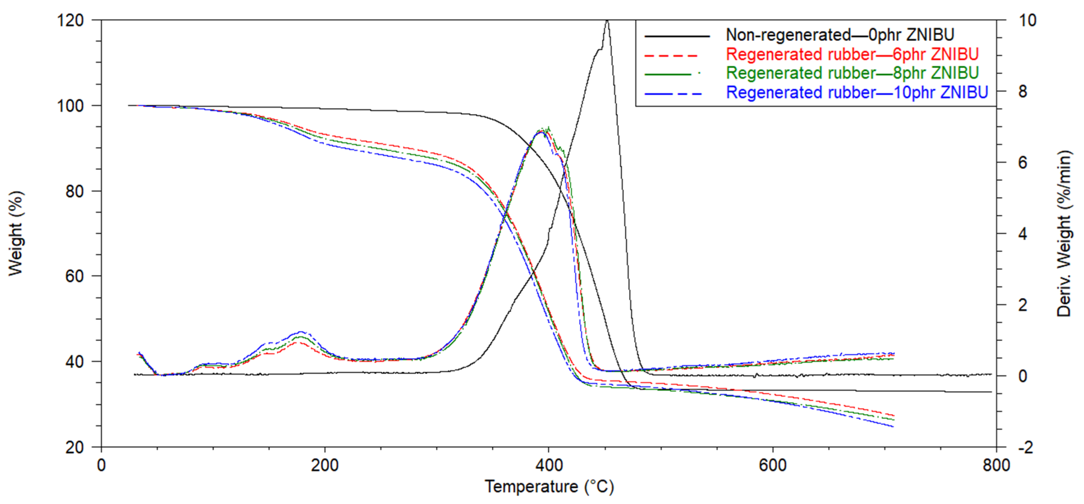 3.5. Characterization of the Regenerated Rubber