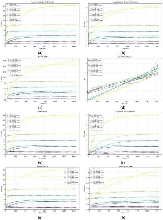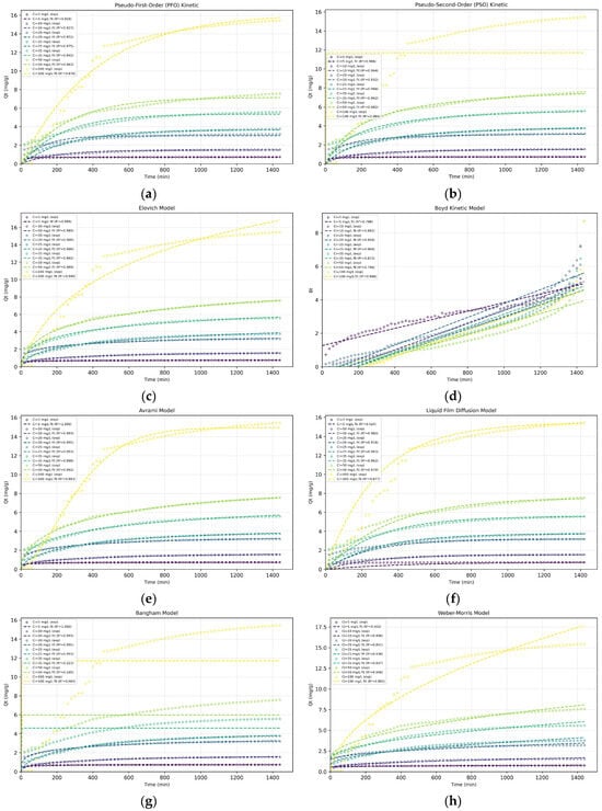 - Benjelloun, M.; Miyah, Y.; Akdemir Evrendilek, G.; Zerrouq, F.; Lairini, S. Recent advances in adsorption kinetic models: Their application to dye types. Arab. J. Chem. 2021, 14, 103031. [Google Scholar] [CrossRef]