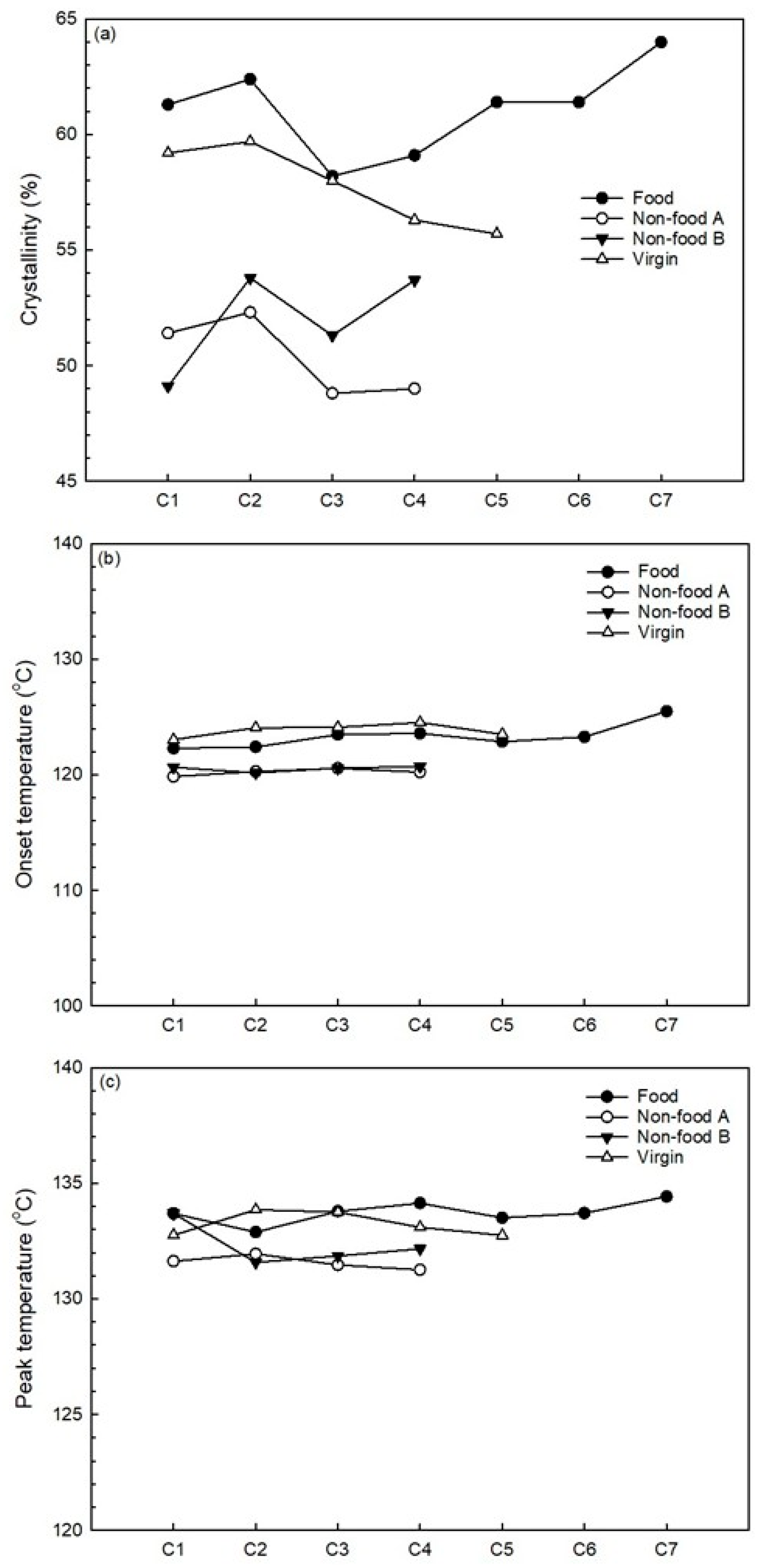- D3418; Standard Test Method for Transition Temperatures and Enthalpies of Fusion and Crystallization of Polymers by Differential Scanning Calorimetry. ASTM International: West Conshohocken, PA, USA, 2021.