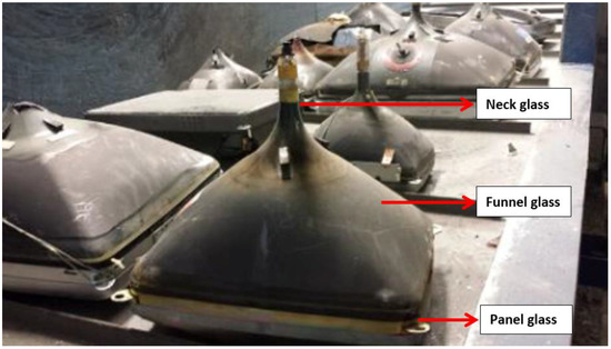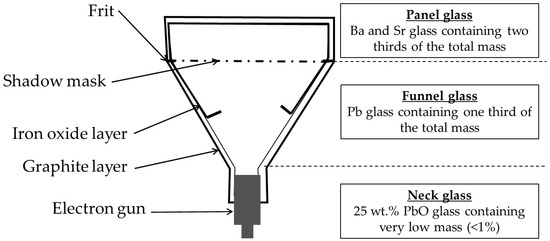 Panel, funnel, and neck glass are the three main parts of CRTs [61,62,63]. The panel glass makes up about 65 percent of the total weight. The funnel glass accounts for about 30 percent of the weight and the funnel glass occupies only 5 percent [64].