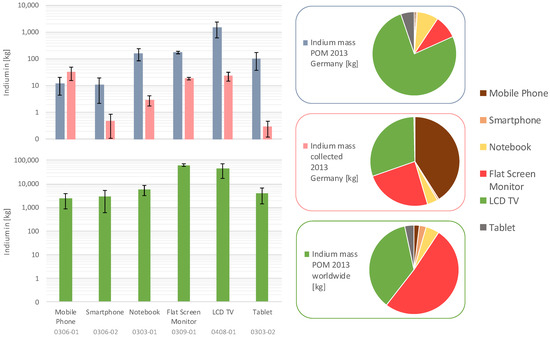 The indium mass flow relating to WEEE LCD devices collected for recycling purposes derives mainly from mobile phones, LCD TVs, and flat screen monitors. The collection of notebooks contributes to about 4% to the total indium flow. Smartphones and tablets play a minor role for indium flows (<1%) in the WEEE streams as no large-scale collection of these devices currently takes place yet. Consequently, recovery strategies should mainly focus on those equipment types with the highest potential.