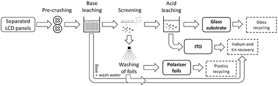 The results presented here provide necessary data and offer an analysis of the recycling potential of the different components. A possible recycling process line for LCD panels is summarized in Figure 8.