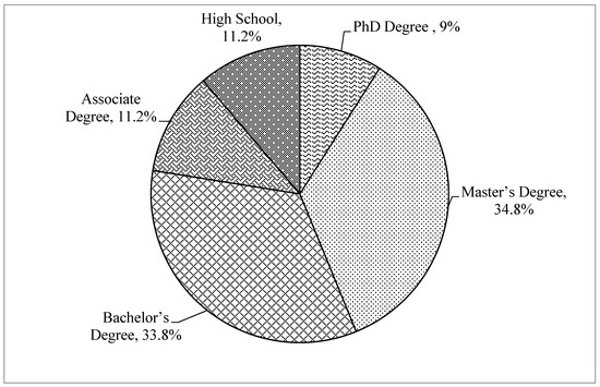 Another contributing factor to high-recycling importance score results can be further tied to respondents’ level of education. In this study, 77.6% of the respondents have earned a Bachelor’s Degree level of education and above (Figure 11). Studies suggest that people with high levels of education tend to know more about the benefits of recycling methods and the procedures of a program, and thus give high importance to it [47].