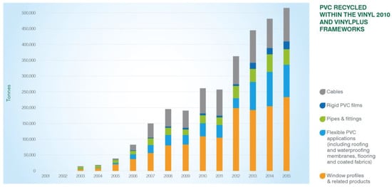 - VinylPlus. Progress Report 2016; Reporting on 2015 Activities; 2016. Available online: http://www.vinylplus.eu/uploads/160826_VINYPLUS_2016_WEB_PS_Singlepage_version.pdf (accessed on 9 August 2017).